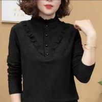 2025秋冬季新款木耳邊長袖衛衣 時尚磨毛一體絨打底衫 百搭顯氣質減齡遮肉 面料柔軟舒適 暗色提花設計 秋冬衣櫥必備 不論單穿外搭都好看