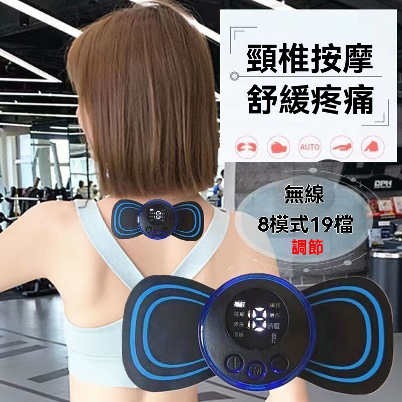 【日本熱賣款】液晶顯示8模式/19擋位 便攜式頸按摩儀器腰背部按摩貼多功能脈衝大功率電子按摩儀